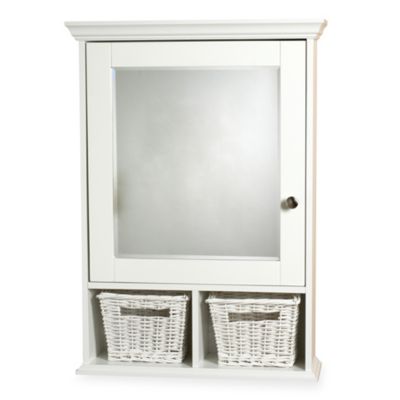 Zenith Wood Medicine Cabinet With Wicker Baskets In White