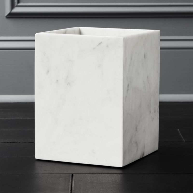 White Marble Wastebasket In Bath Accessories Reviews Cb2