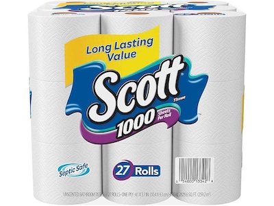 Scott 1 Ply Standard Toilet Paper White 1000 Sheets Roll